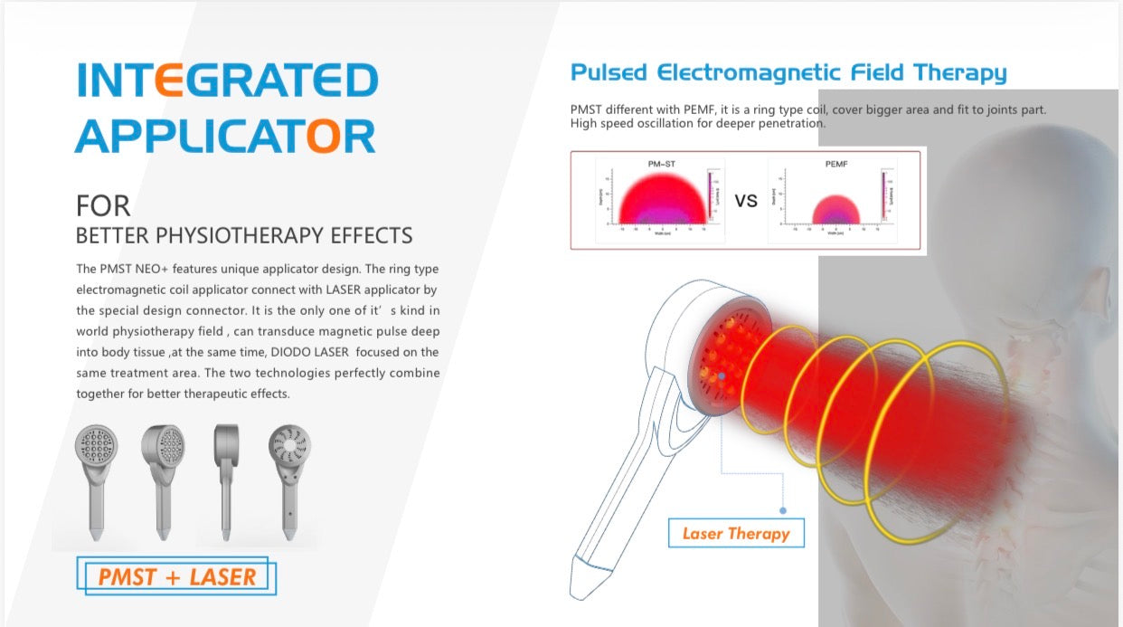 Treatment sessions take approximately 5-20 minutes depending on the condition. Treatments may be done 1-2 times per week with up to 10 sessions in a 5 week period, depending on the diagnosis. Many patients report a significant improvement in their symptoms after just a few sessions. EMTT is often combined with shockwave therapy for more powerful effects.